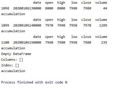 일단 이렇게 하는 것으로 우선은 눈에 보이는 문제를 해결하는 데는 성공했습니다. 이제 남은 것은 제대로 이동평균선과 표준편차를 구할 수 있는가 없는가 하는 것 입니다.
