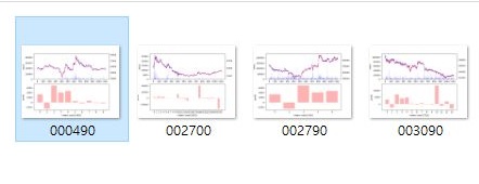 그리고 나서 8개의 종목을 가지고서 한번 작업을 시작해 보았습니다. 일단 모든 종목은 아니지만 그래도 상당히 많은 경우에서 거래량이 너무 커서 1/10으로 줄이려는 시도가 일어나는 것을 확인할 수 있었습니다.