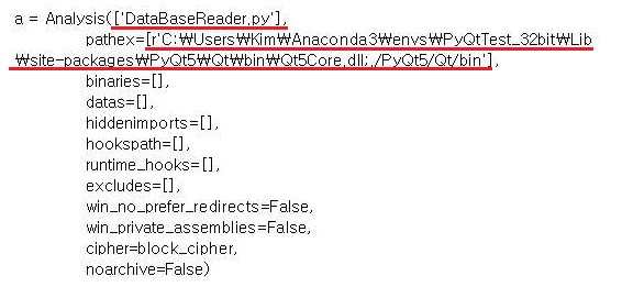 일단 먼저 스펙파일이 만들어 졌다면, 위 스크린샷에서 볼 수 있는 것처럼 pyqt5가 제게는 있기 때문에, 위 스크린샷과 같이 파이썬이 설치되어있으면, PyQt5의 bin폴더에 있는 Qt5Core.dll과 bin에 있는 모든 파일을 가지고 올 수 있도록 합니다. 이 경로는 설치한 설치자 마다 다르니, 그때그때 지정을 달리해야 할 필요성이 있습니다.