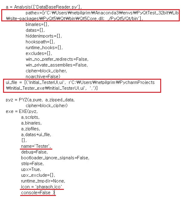 그리고 나서 pyi-makespec으로 파일 한개만 만들기 위한 조건만을 집어넣어 주는 것으로 스펙파일을 만들어 보도록 합니다.