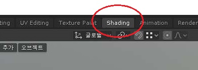 그래서 이 작업을 어떻게 하느냐 했더니, 우선 위 스크린샷에서 나와 있는 것처럼 Shading이라는 항목으로 가서, 윈도우를 바꾸어 보아야 했습니다.