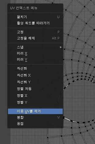 마우스를 우클릭해서 나온 메뉴를 이용해서, 나오는 내용을 가지고서 이중 UV를 제거하는 메뉴를 선택해 보도록 합니다. 이렇게 해서 어떻게 되느냐 하면...........