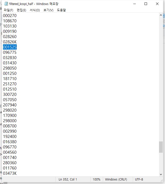 일단 먼저 해야 할일은, 위 스크린샷에서 볼 수 있는 것과 같이, 우선 중단이 된 종목의 다음 종목부터 한번 리스트를 확보하는 일입니다.