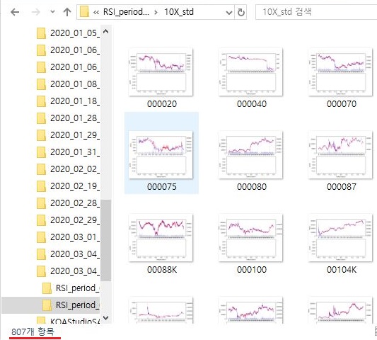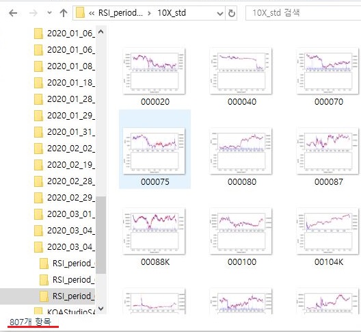 일단 결과가 제대로 나온 것인지 확인을 해 보았습니다. 60 기간이라고 해야 할까요? 분봉 60개를 가지고서 10분봉 차트를 가지고 했는 결과에서는 위 스크린샷과 같이 나오는 결과를 보면, 제대로 807개가 나오는 것을 볼 수 있습니다.