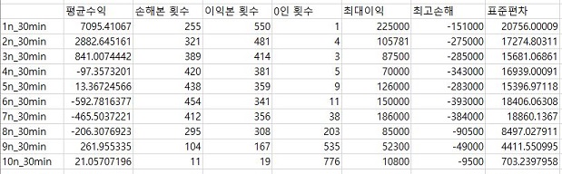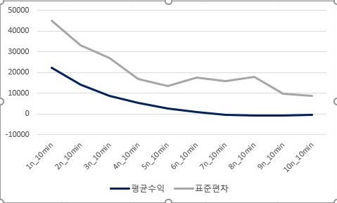 평균수익을 보면, 2번까지는 어떻게 해서든 수익이 평균적으로 나오기는 나옵니다만, 문제는 그 마저도 다른 경우에 비하면 더 낮아 보인다는 것을 알 수 있습니다.