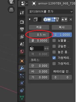 프로퍼티 윈도우로 가서, 위 스크린샷에서 볼 수 있는 것처럼 렌치 모양의 아이콘을 클릭해서 모디파이어를 추가해 주도록 합니다.