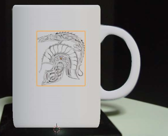 그리고 나서 위치를 한번 조정해 주도록 합니다. 왜 이렇게 하느냐 하면, 바로 아래의 스크린샷을 보시면 알 수 있을 정도로 머그컵 앞쪽으로 백터 그래픽을 가지고 오기 위해서 입니다.