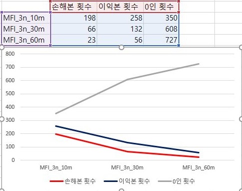 그리고 나서 이익과 손해의 최대치를 한번 비교해 보도록 하는데, 위 스크린샷에서 볼 수 있는 것처럼 일단 60분봉에 가까워 지면 질수록 점점 이익과 손해가 줄어듭니다.