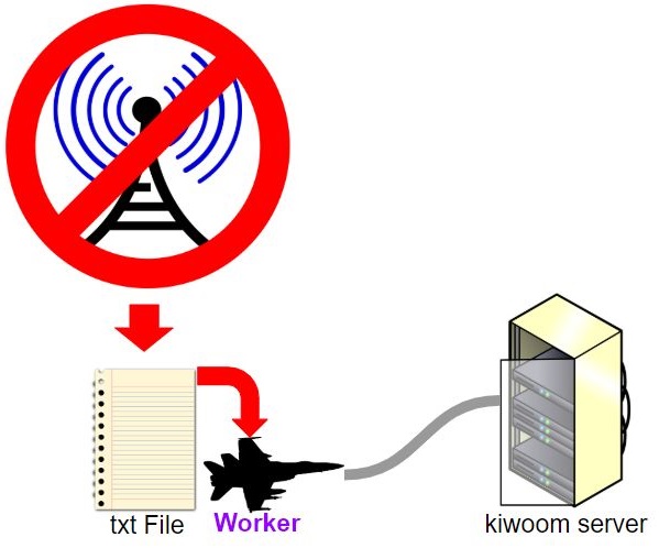 바로 한개의 아이디로 로그인을 해서 서버에 요청을 일정횟수 이상 하게 되면, 요청횟수 제한을 초과하게 되었다고 키움증권 서버에서 접속을 잠시 차단해 버립니다. 그래서 이를 피하기 위해서, 위 그림과 같이 이런 문제에 직면하게 됩니다.