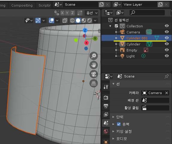 이렇게 하는 것으로 어떻게 해서 나오는 것을 보면, 위 스크린샷의 씬 컬렉션 항목을 보면, 이전에는 없는 오브젝트가 하나 나오는 것을 확인할 수 있기는 있었습니다. 이렇게 해서 단순한 복사본에 불과한 페이스 복사본이 이제 새로운 오브젝트로 하나 나오는 것을 확인할 수 있었습니다.