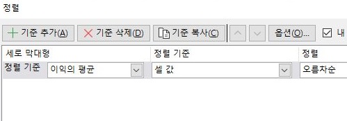 그렇게 해서 정렬 기준으로 이익의 평균을 다시 지정을 했으며, 여기서 정렬 순서는 오름차순으로 정렬해 보도록 했습니다. 이제 그래프를 그릴 시간입니다.