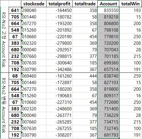 그런데 계좌와는 다르게 여기서 나오는 결과를 보면, 승률에 있어서는 여기서도 전혀 유의차를 보이지 않는 것을 확인할 수 있었습니다. 이래서야 이걸 어떻게 더는 생각할 것도 없이 일단여기서 끝내고, 다음 조건을 한번 살펴보러 가야 합니다.
