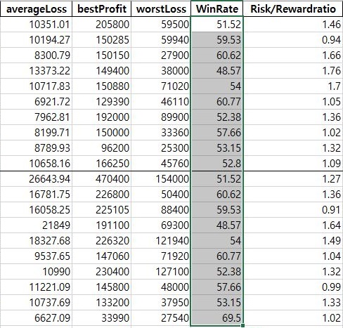 이제 마자믹 매도/매수 룰을 가지고서 한번 작업을 해 보기 위해서 조건을 가지고서 가장 많은 수익을 냈는 10개의 종목씩 가지고 오도록 합니다.