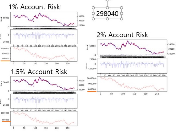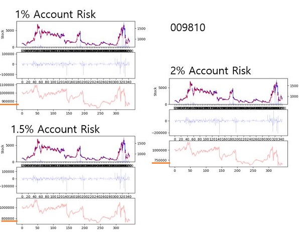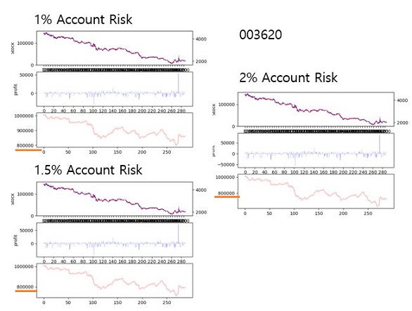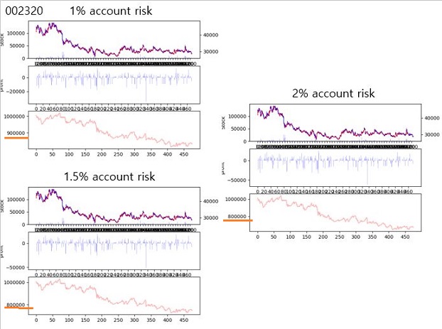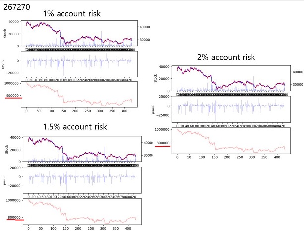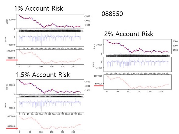 결국 10개의 종목을 다 살펴보니, 이렇게 전부 Account가 변하는 패턴은 같은데, 그 낙폭만이 감당하는 리스크가 커지면 커질수록 점점 더 올라가는 것을 확인할 수 있었습니다.