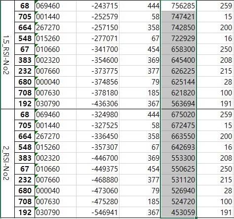 다음으로 실행을 해야 하는 것으로는 역시 1.5%와 2%사이에 대해서 한번 종목이 얼마나 일치하는 지를 보도록 하는 것인데, 여기서는 100%일치하는 것을 확인할 수 있었습니다. 이래서야 이를 바탕으로 해서 얼마나 많은 종목에서 차이가 나오는 지는 모르겠습니다만, 일단 여기까지 확인을 할 수 있기는 있었습니다.