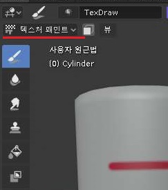 어디가 문제인가 했더니, 일단 위스크린샷에서 나오는 것처럼 우선 텍스쳐 페인트라고 할 수 있는 항목으로 전환을 하지 않아서 생기는 문제였습니다.