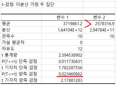 여기서도 어느정도 아슬아슬하기는 했지만, 그래도 어떻게 해서 유의수준 0.05에서 유의차 있게 3%의 조건에서 더 이익이 많이 나왔다고 할 수 있습니다.