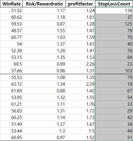 그런데 여기서는 유의수준 0.05에서는 어떻게 유의차가 없고, 대신 0.5 수준으로 낮은 수준에서는 유의차가 있게 4%의 조건에서 손절매가 덜 일어났다는 것을 확인할 수 있었습니다. 이렇게 하는 것으로 일단 작업을 마무리 하기는 했습니다. 이제 다음 단계에 들어가 봐야 합니다.