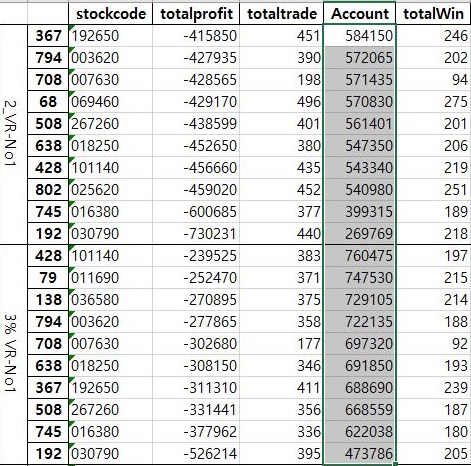 마지막 매도/매수 룰에서 한번 작업을 해 보고자 합니다. 여기서도 역시나 손해를 본 종목을 대상으로 해서, 유의차 있게 계좌의 마지막 숫자가 어떤 의미를 지니는지 알아보면........