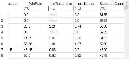 그래서 MFI지수에서도 한번 손절매가 많이 일어난 종목에 대해서 알아보기 위해서, 한번 정렬을 해 보기는 했습니다만, 손절매 횟수가 있다는 것을 찾을 수 없었습니다.