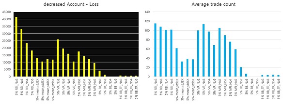 마지막으로 손절매 횟수입니다만, 이것도 절대 적다고 말할 수 없습니다. 아무래도 여전히 저 많은 손절매 때문에 계속해서 무언가 않 좋은 상황이 이어지는 것이 아닌가 하는 생각이 듭니다. 일단 다음의 조건에서는 한번 10%의 stop loss 기준을 세우고 나서, 작업을 해 봐야 할듯 합니다.