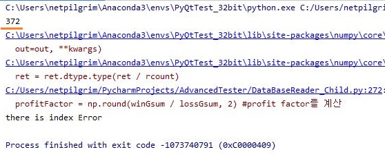 일단 여기서 조그만한 에러가 나오긴은 했지만, 그래도 실행은 문제없이 되기는 되었습니다. 그런데 어디가 문제가 있다면 있는 것이, 매수한 주식이 372개라고 합니다.
