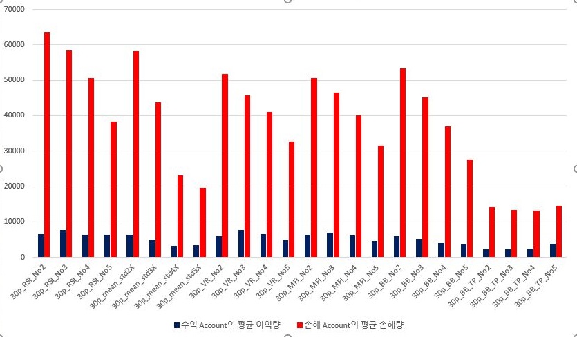 다음으로 해야 하는 것으로는 일단 손해량과 이익량에 대해서 비교해 보았는데 언제나 그런 것 처럼 이익본 량보다 손해본 양이 훨씬 더 많은 것을 확인할 수 있었습니다. 이래서야 상황이 좋지만은 않은데, 이 30period가 끝이 아니라 다른 조건에서 나온 결과와도 한번 맞추어 봐야 하는 일이 남아 있으니, 계속해서 분석 결과를 올리겠습니다.