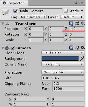 바로 실제로 메인 카메라가 Z 축으로 부터 -10이라는 거리로 떨어져 있어서 그걸 완전히 반대로 진행을 한 것이라고 보시면 됩니다.