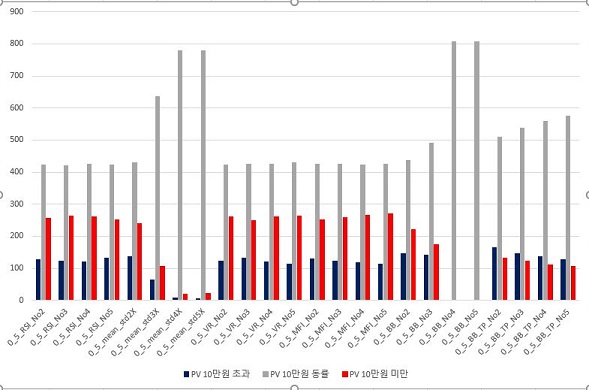 그리고 나서 승률이 50% 이하인 종목의 갯수에 대해서 한번 알아보았는데, 문제는 이렇게 알아보니 거래가 전혀 없어서 아예 0% 승률까지 포함하면, 그렇게 큰 변화는 없어 보입니다.