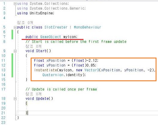 유니티 스크립트로 랜덤한 슬롯머신 아이콘의 배치 -1-