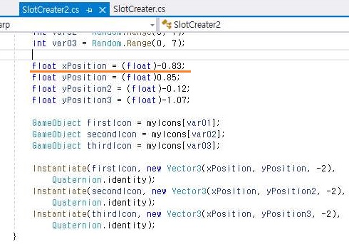 유니티 스크립트로 랜덤한 슬롯머신 아이콘의 배치 -4-