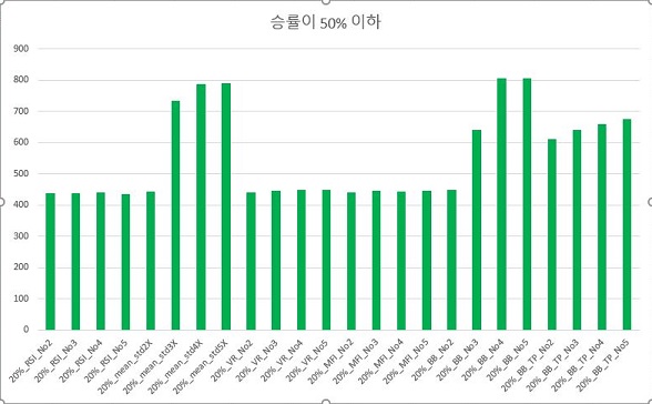 그리고 나서 승률이 50% 아래인 종목에 대해서만 일단 숫자를 세어 봤는데, 여기서 하나 알 수 있는 것은 일단 패턴 자체는 크게 변화가 없다는 것 입니다.