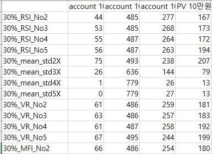 가장 먼저 할일은 한개의 엑셀 시트에 모든 매도/매수 룰의 결과를 가지고 와서, 한개로 모아놓은 다음에 평가에 필요한 지표들을 하나하나 계산해 보도록 합니다.