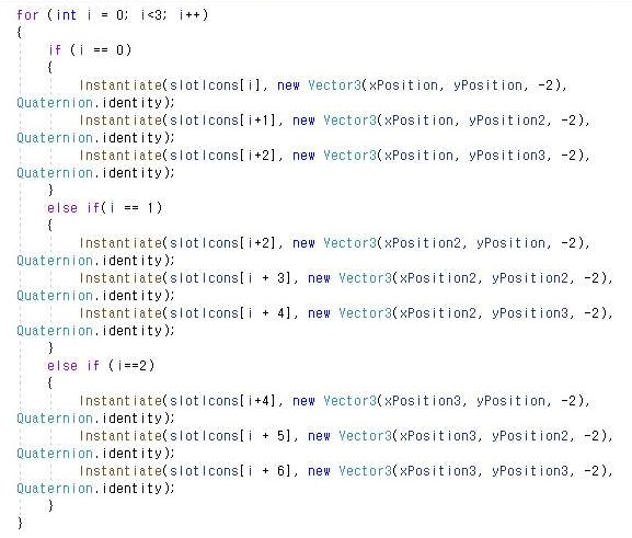 지난번 포스팅에서 중간에 멈추어 버렸는데, 아무튼 간에 계속해서 게임 매니저를 만들어서 1차 목표는 바로 슬롯머신의 아이콘을 배열해 보는 것을 목표로 해서 일단 움직여 보도록 했습니다. 이 작업을 하기 위해서, 일단 계속해서 게임 매니저의 내용을 프로그래밍 해야 합니다.