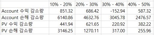 다음은 Account상으로 나와 있는 것처럼 일단 손해를 본 그 양에 대해서 다루고 있는데, 여기서는 일단 예상대로 50%의손절매로 가면 갈수록 손해보는 양은 줄어들고 있습니다.