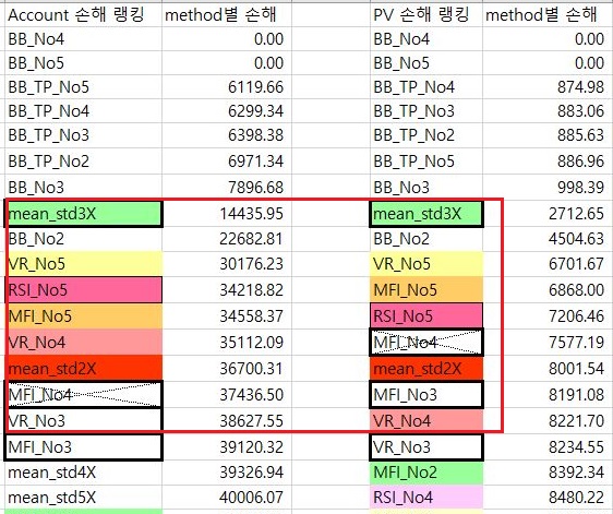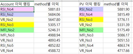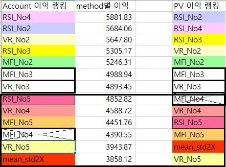 일단 각각의 룰을 이름을 강조하는 색상을 칠해보았더니, 우선 포트폴리오 가치나 Account상이나 그 룰이 그 룰이라고 해야 할 정도로 Top 5는 같은 것을 자랑하고 있습니다.