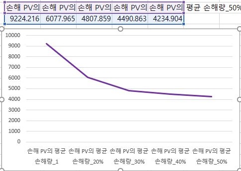그리고 나서 포트폴리오 가치상으로 손해를 보는 양의 변화인데, 여기서는 어찌된 것인지 마치..... 제곱근의 그래프를 보는 듯 한 감이 듭니다. 아무튼 여기서 하나 확인할 수 있는 것으로는 바로, 30%를 넘어가서는 포트폴리오 가치상으로는 손해 감소가 그다지 크지 않다는 것 입니다.