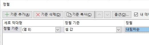 그리고 나서 다시 복사해서 값만 붙여넣기 한 다음에, 위 스크린샷에서 볼 수 있는 것처럼 엑셀 내부에 있는 정렬 기능을 사용해서 한번 내림차순으로 정렬해 보도록 합니다.
