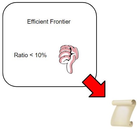 먼저 설명을 해야 하는 것으로는 일단 효율적 투자선인 Efficient Frontier를 생성하면서 그 비중이 10% 미만인 종목은 무조건 탈락시켜서 남는 종목만을 선택한다는 전략을 우선 사용했습니다.