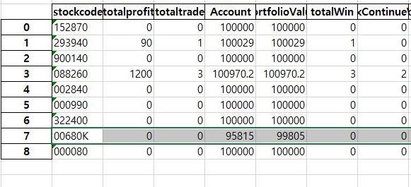 일단 RSI_No2라는 종목의 모습을 보면, 한 종목도 손해가 일어나지 않은 것을 볼 수 있습니다. 여기서는 5 종목은 일단 아무런 거래가 없고, 단지 4 종목에서는 거래가 일어났는데, 손해를 보지 않았습니다.