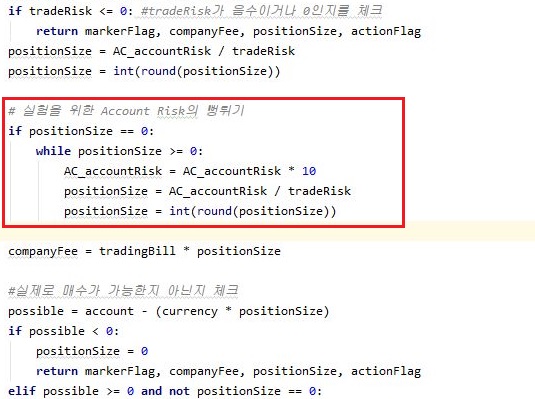 일단 지난번 포스팅에서 부터 무엇을 다음 스탭으로 해야 할지 모르겠다는 생각이 들었습니다만, 그래도 이래저래 작업을 해야 할 필요성이 있기는 있기에, 일단은 먼저 해야 하는 것으로는 이 position size에서 지정되는 Account에 감당 가능한 리스크가 보통은 2%를 넘지 않는데, 제 경우에는 10%나 하는 문제점이 있었습니다. 그래서 이걸 특정한 시점이 되면 변경이 되라고 바꾸어 볼까 합니다.
