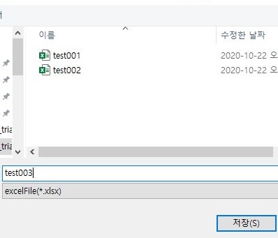 일단 제대로 위 스크린샷처럼 어떻게 해서 test003이라고 제가 지정만 하였고, 그 전에는 존재하지도 않았는 엑셀 파일이 생성이 되는 것을 확인할 수 있었습니다.