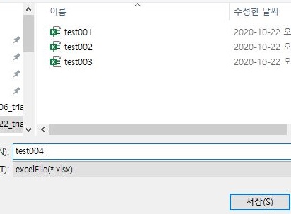 그리고 저장을 할 폴더에는 test004라는 엑셀 파일이 생성될 수 있도록 이름을 지정해 놓고 나서 어떻게 작동을 시켜 보도록 합니다.