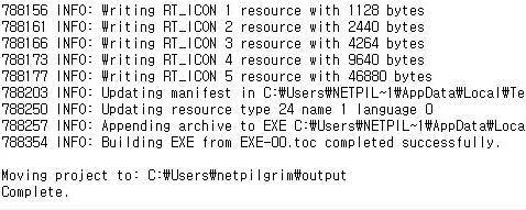 이렇게 해서 일단 위 스크린샷에서 보이는 것처럼, 우선 제대로 파일이 exe로 빌드가 된 것 까지는 확인할 수 있었습니다. 다만 문제가 여기서 발생하게 된 것이 있는데............