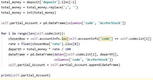 일단 이렇게 해서 종목 하나당 할당할 돈에 대해서 어떻게 계산이 끝나기는 끝이 났습니다. 이제 다음으로 해야 할 것이 하나 있습니다.