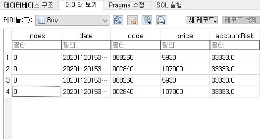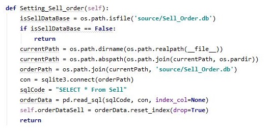 일단 매수 오더를 세팅하는 과정을 거치고자 합니다. 이 과정을 거치기 위해서는 먼저 지난번에 생성이 된 Buy_Order라는 데이터 베이스를 읽어올 필요성이 있습니다.