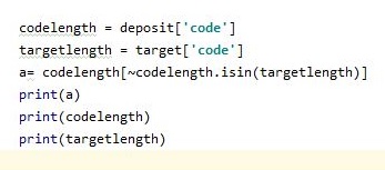 그리고 나서 이 작업을 하기 좋도록 일단 코드 리스트를 일단 만들어 주도록 하는데, 여기서 중요한 것은 ~입니다. isin이 일치하는 것을 찾는 것이라면, ~를 붙이기만 하면 일치하지 않는 것을 찾으라는 명령이 됩니다.