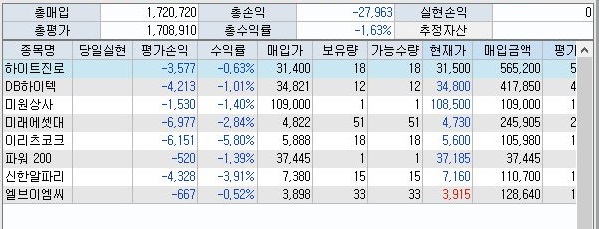 그런데 하다보니, 하이트 진로와 같이 어째서 인지 매입금액이 제 의도를 훨씬 넘어가 버린 종목이 나오는 상황을 볼 수 있었습니다.