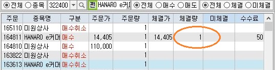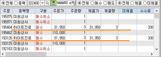 어떻게 된 것인지 하이트 진로의 경우에는 제대로 매수가 되지 않아서 같은 내용의 매수가 2번 연속으로 나오는 것을 확인할 수 있었습니다.