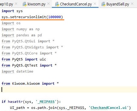 그리고 기존에는 키움증권 서버에 연결이 되지 않으면 None이 아닐 경우라고 한정을 했는데, 그러지 말고 위 스크린샷에서 볼 수 있는 것처럼 이단 음수의 값이면 다시 돌아가도록 설정을 했습니다.